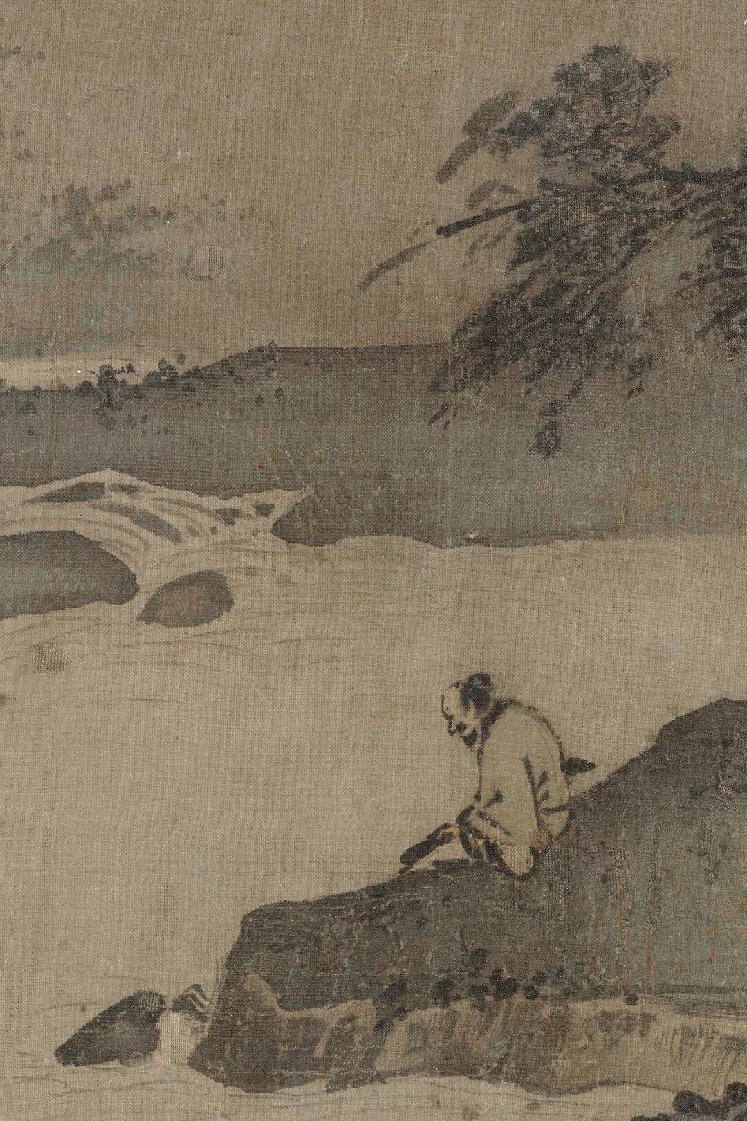 夏圭以“水”为声学媒介:溪水未用密线勾勒,而是借留白与山石、树木的虚实对比,模拟出“大珠小珠落玉盘”的清脆;远处雾霭遮蔽的空旷,则暗合琴音的余韵绵长。这种“以画写声”的技法,远超宋代郭熙“山得水一活”的视觉理论,将水景从“血脉”升华为“听觉符号”。